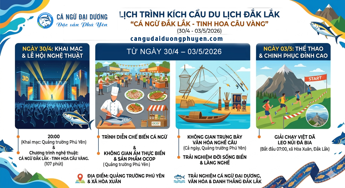 1. Chương trình nghệ thuật kích cầu du lịch dịp Lễ 30/4 - 01/5 năm 2026, chủ đề “Cá ngừ Đắk Lắk - Tinh hoa câu vàng”